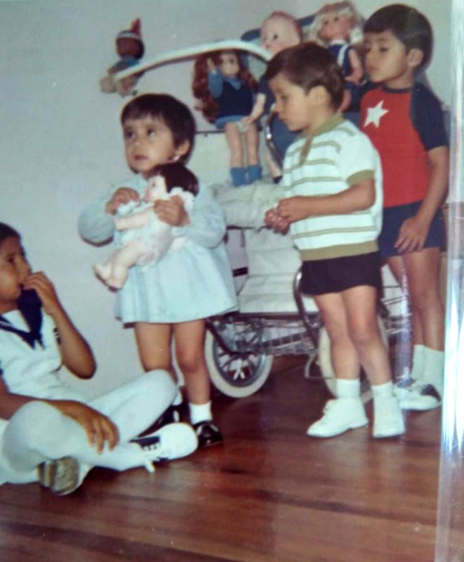 With my dear cousins ​​Gonzalez and my brother. I am the oldest. Here in the 80s. The joy of childhood. Lili Chacon Gonzalez, Juan Pablo my brother, Camilo Lopez, Roger and Jimmy Kratz.