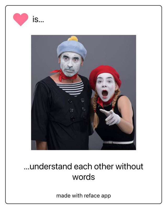 Here I made a montage with our faces. French mimes. Cinema, art, theater, painting, music, dancing... my dancing... I enjoyed all of that and rediscovered it in recent years...