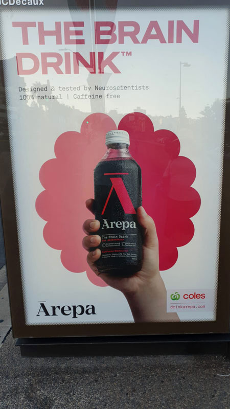 De mi papa, un publicista natural, aprendi dichos y a apreciar la publicidad y el copy. La arepa es un pan de maiz tradicional. Aqui encontre esta palabra en un paradero de bus convertida en nombre para bebita energetica.