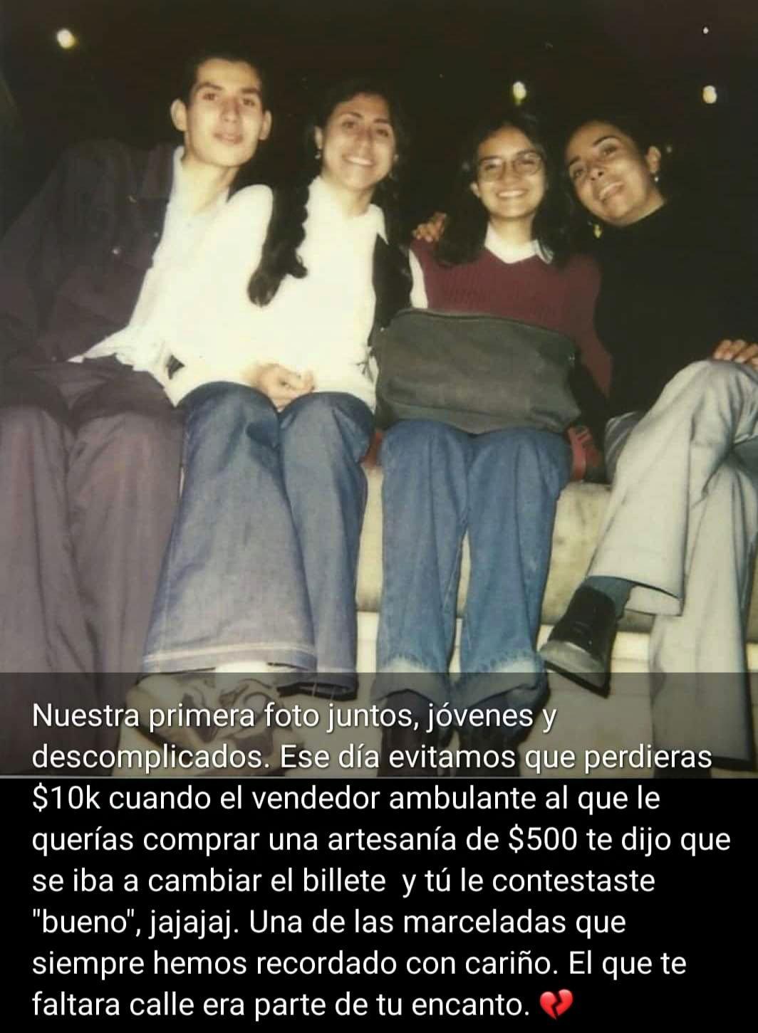 Our first photos together, young and easy-going. That day we saved you from losing 10K. when the street vendor you wanted to buy a $5000 craft from told you he was going to change the bill and you answered: "okay." Ha, ha, ha... One of the Marceladas we have always remembered fondly. The fact that you lacked street smarts was part of your charm. Medical stud